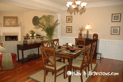 People live their lives in mysterious ways within the walls of their home. This homeowner turned their formal dining room into a make-shift office with the use of card tables and rolling file drawers. Plan B suggested moving the "office" into a corner of the garage so this space could be more appropriately staged for a more finished look. The result: clean lines without the chaos of clutter created a soothing and sophisticated room for buyers to imagine family or friends enjoying a meal.